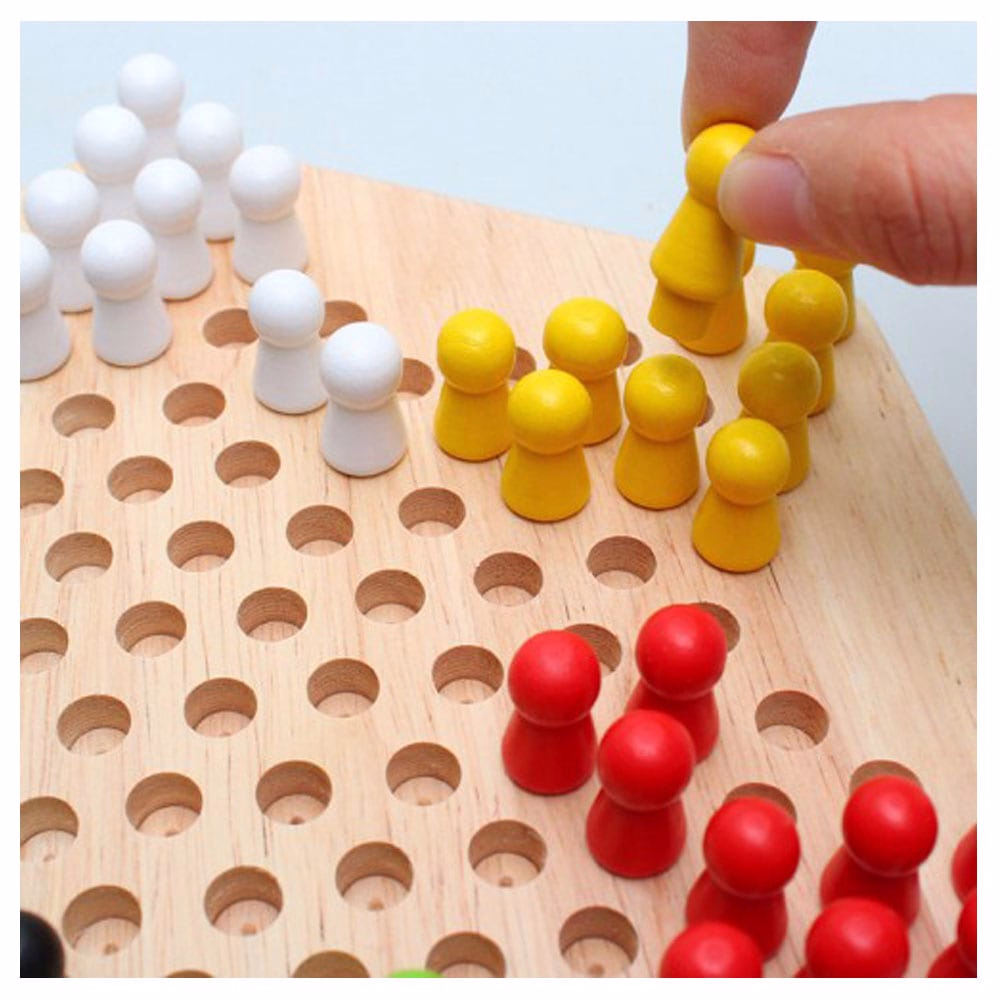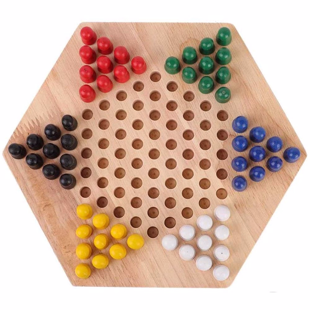 Joc chinezesc dame, este un joc de societate clasic, cu pioni colorati, realizat din lemn.