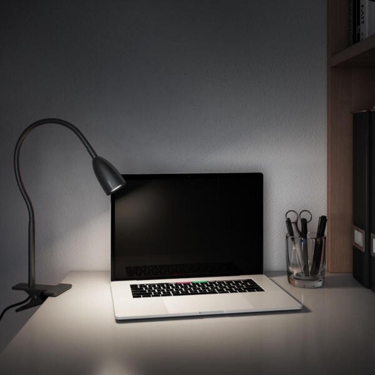 Funcționalitatea este sporită de sistemul de prindere cu clips, care permite fixarea fermă pe diverse suprafețe (masă, poliță, blat), eliberând spațiul prețios. Corpul flexibil al lămpii permite direcționarea precisă a luminii acolo unde ai cea mai mare nevoie.