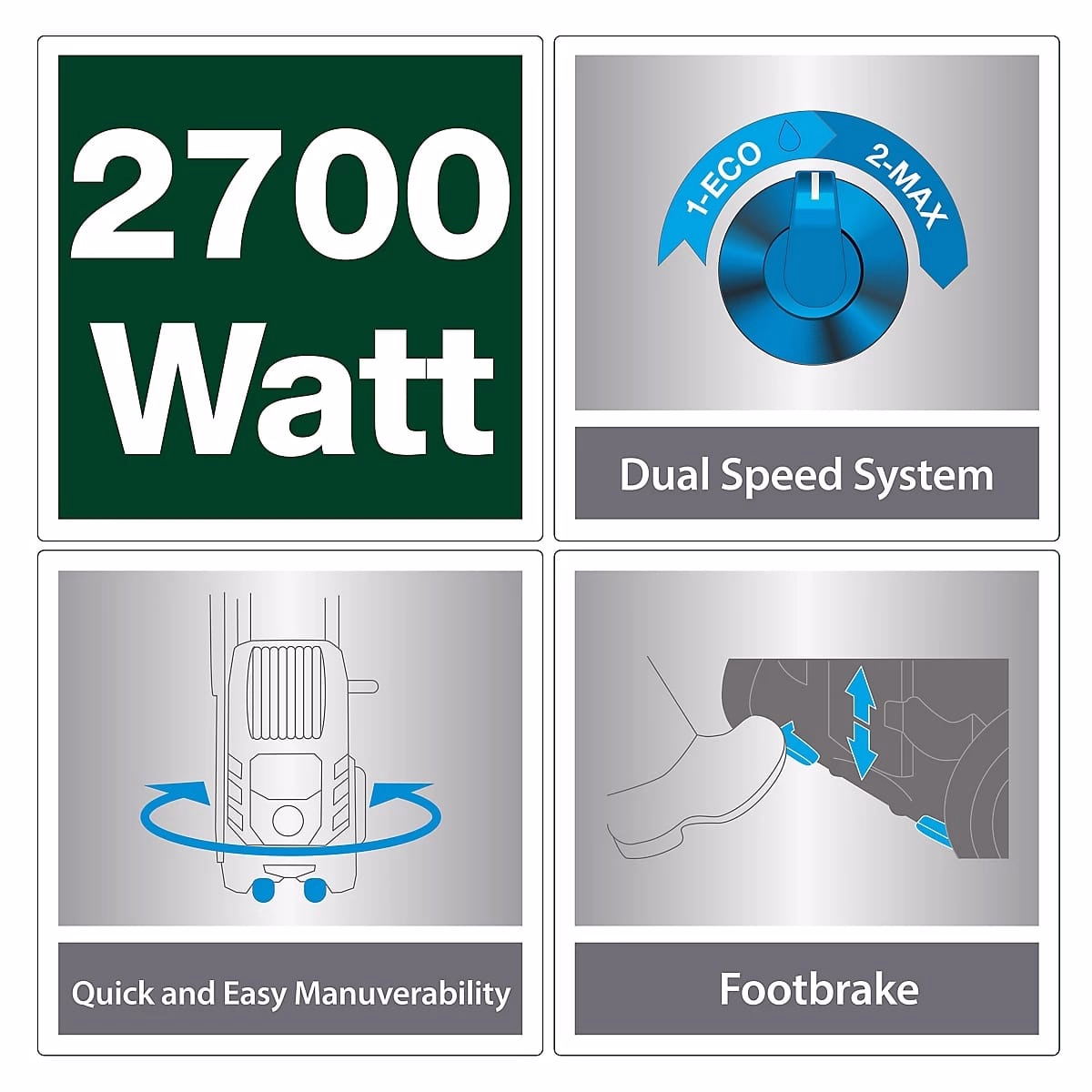 Mac Allister MPWP2700 este echipat cu un motor puternic de 2700 W, capabil sa produca o presiune maxima de 155 bar.