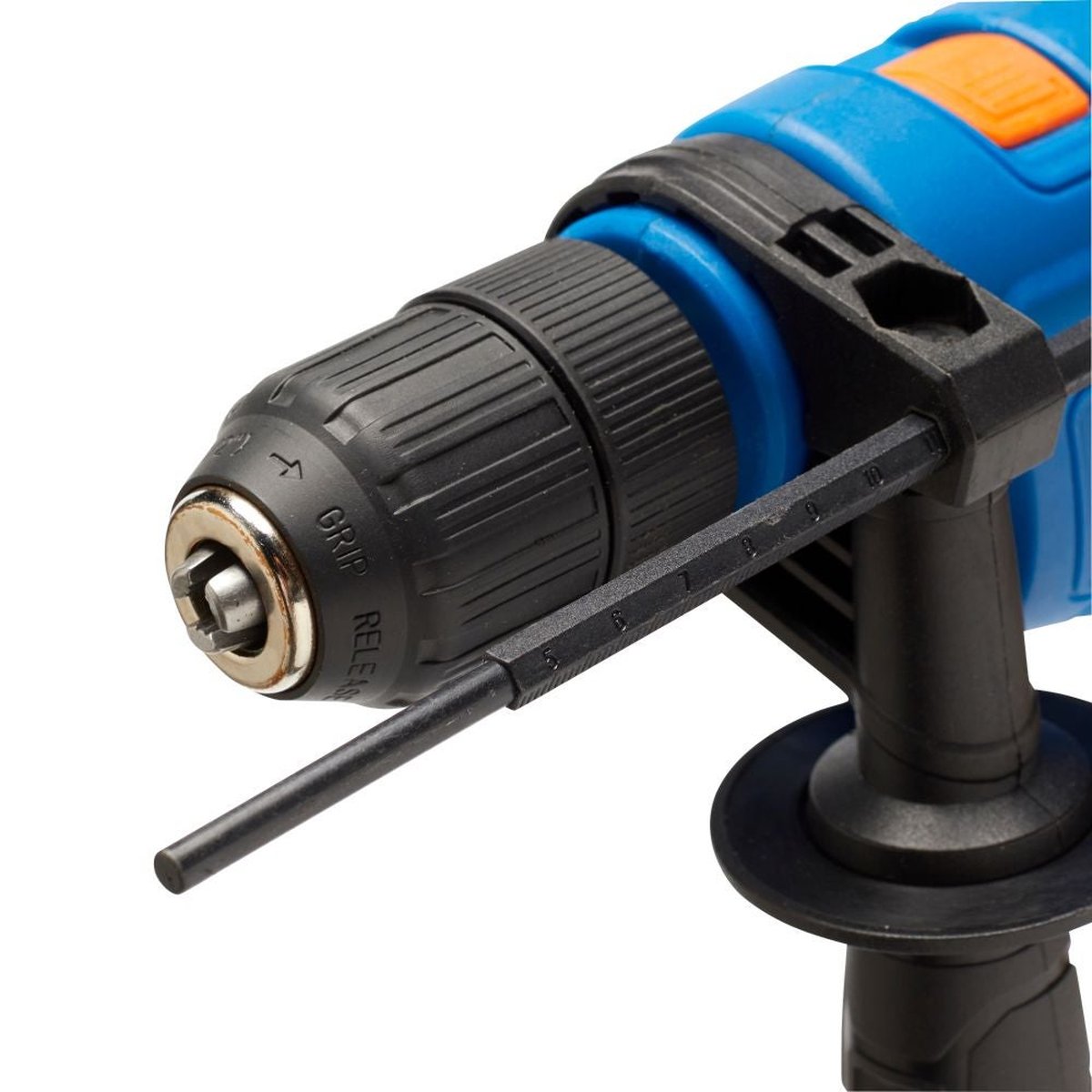 Mandrina autostrangere, cu o capacitate de până la 13 mm, fixează sigur burghiele cu tijă cilindrică fără a necesita cheie, facilitând schimbarea rapidă a accesoriilor. Comutarea între modul de găurire standard și cel cu percuție se realizează ușor, iar blocarea butonului de pornire asigură confort sporit în timpul lucrului continuu. Funcționalitatea de rotație inversă a mandrinei adaugă versatilitate.