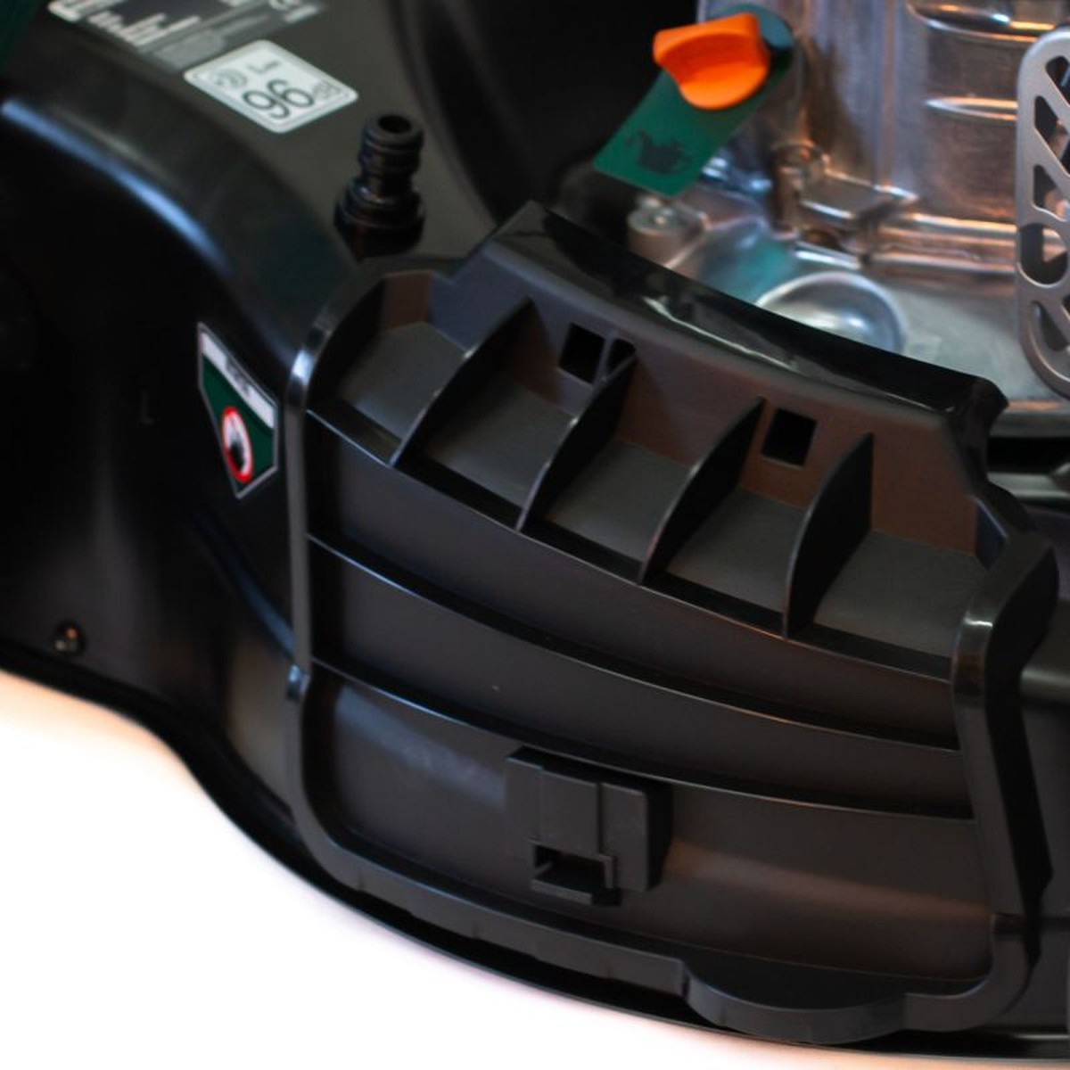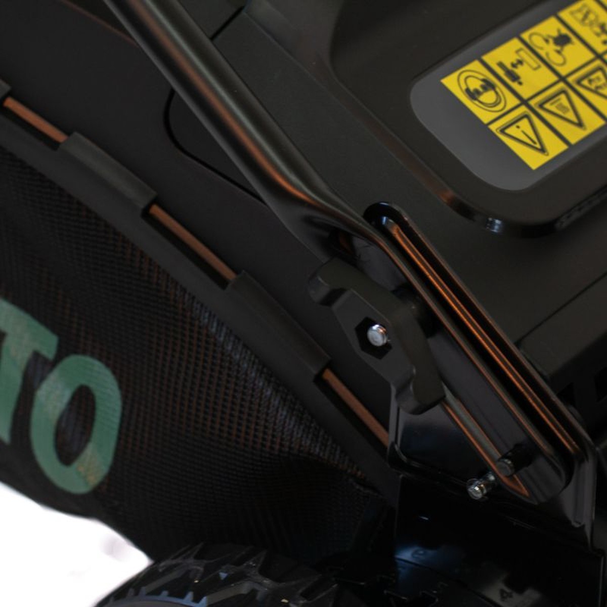 Coșul colector textil de 60 l, prevăzut cu indicator de umplere, permite o colectare eficientă a resturilor vegetale fără a necesita goliri dese. Tracțiunea integrată ușurează deplasarea, mai ales pe terenuri în pantă sau cu denivelări, iar capacele detașabile ale roților oferă acces rapid pentru curățare. Totodată, mașina vine cu o funcție de spălare integrată pentru întreținerea cuțitelor.