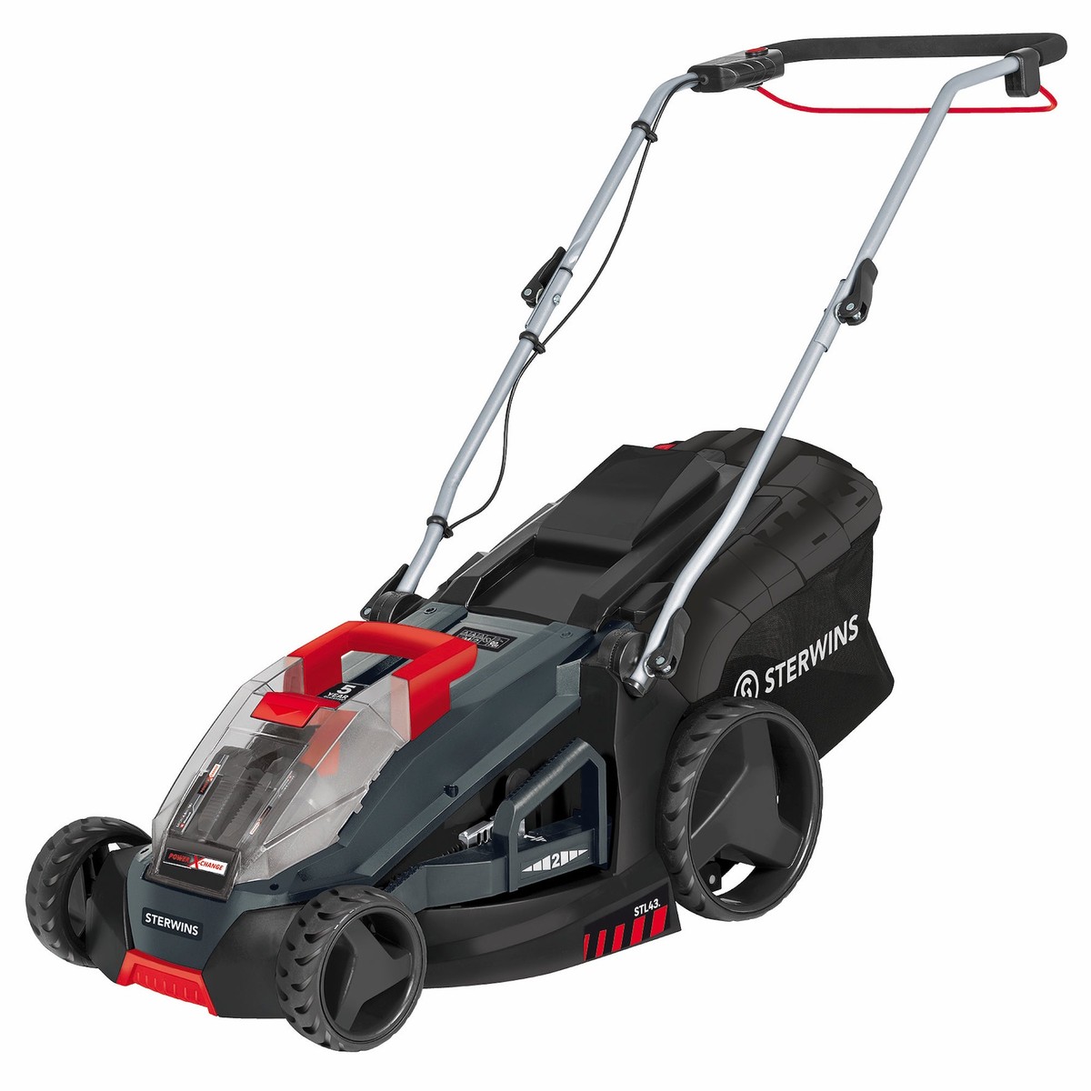 Masina de tuns iarba cu acumulator Sterwins de 43 cm combina puterea, autonomia si usurinta in utilizare, oferind zero emisii in timpul functionarii. Acest kit complet include 2 baterii Power X-Change de 4 Ah si 2 incarcatoare standard, asigurand o autonomie de pana la 600 m² cu o singura incarcare pentru tunderea regulata a gazonului.