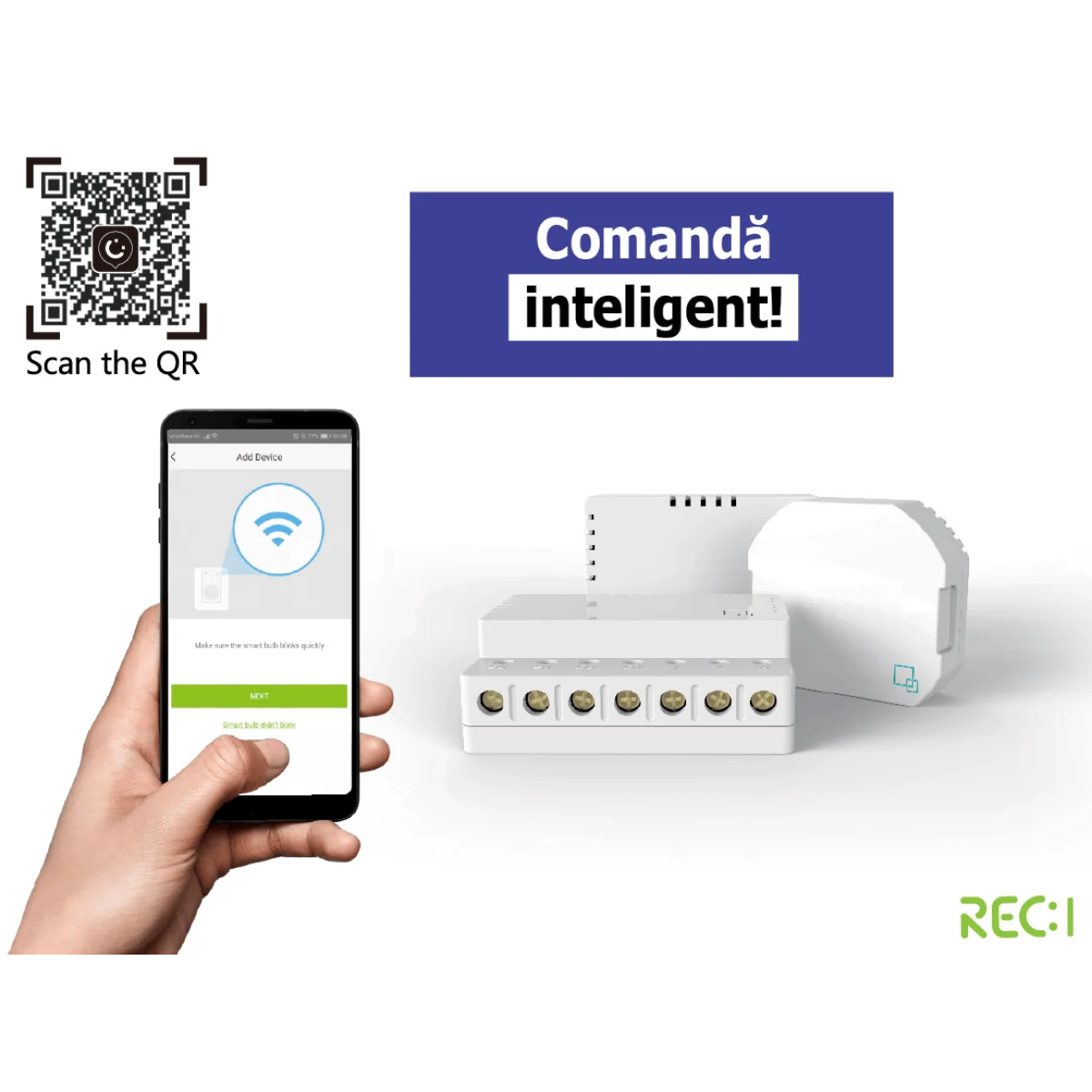 Tot ce trebuie sa faci este sa conectezi modulul, dupa instalare, la smartphone, pe care este instalata in prealabil aplicatia Rec.