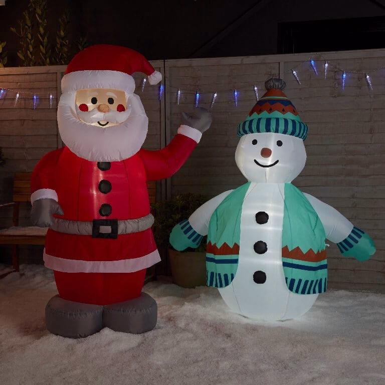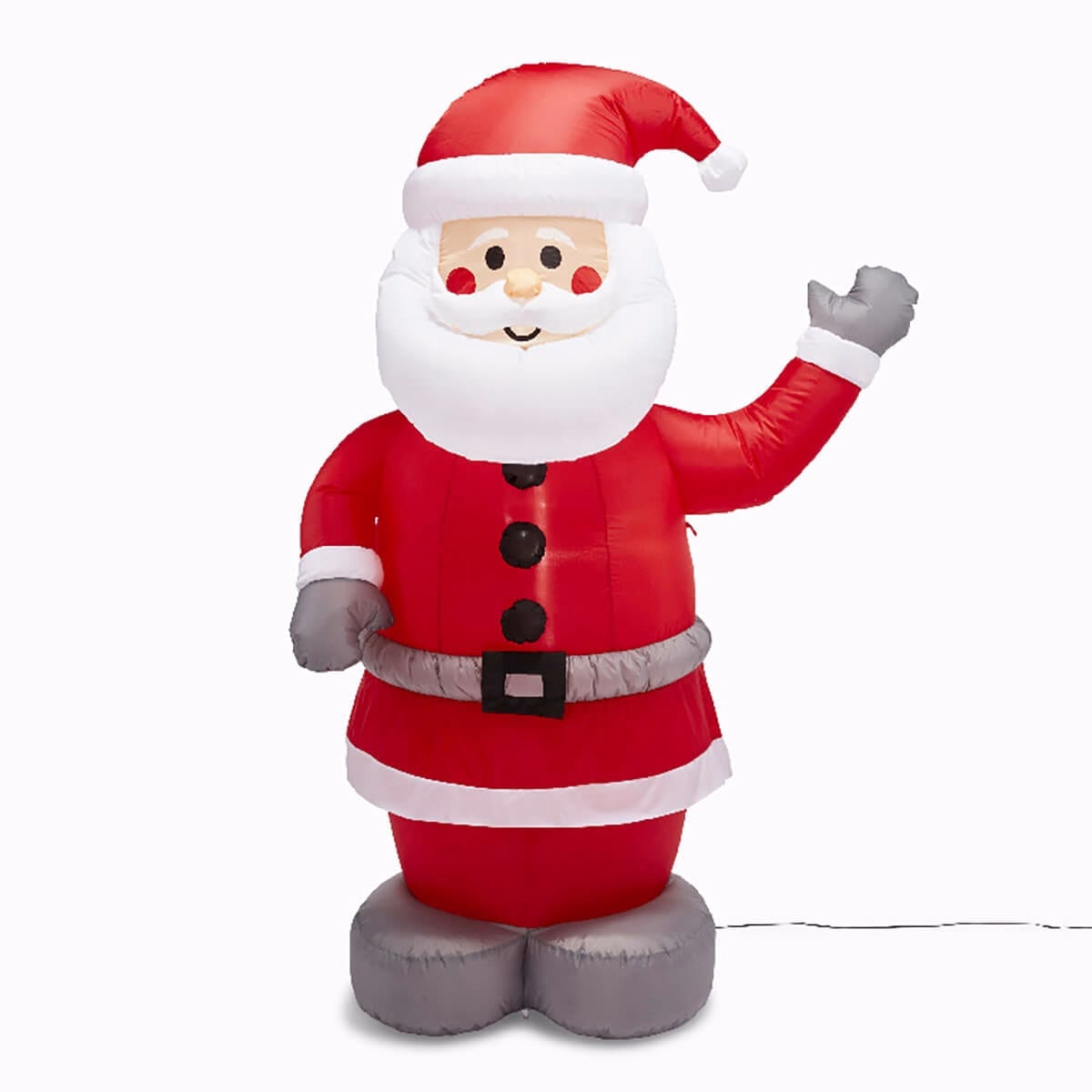 Moş Crăciunul gonflabil este excelent pentru a puncta perioada sărbătorilor în afara casei dvs. cu ocazia acestui Crăciun. Acesta se aprinde cu LED-uri şi se evidenţiază pe timpul nopţii. Produsul include ţăruşi, pentru a fi fixat în siguranţă în pământ pe perioada sărbătorilor.