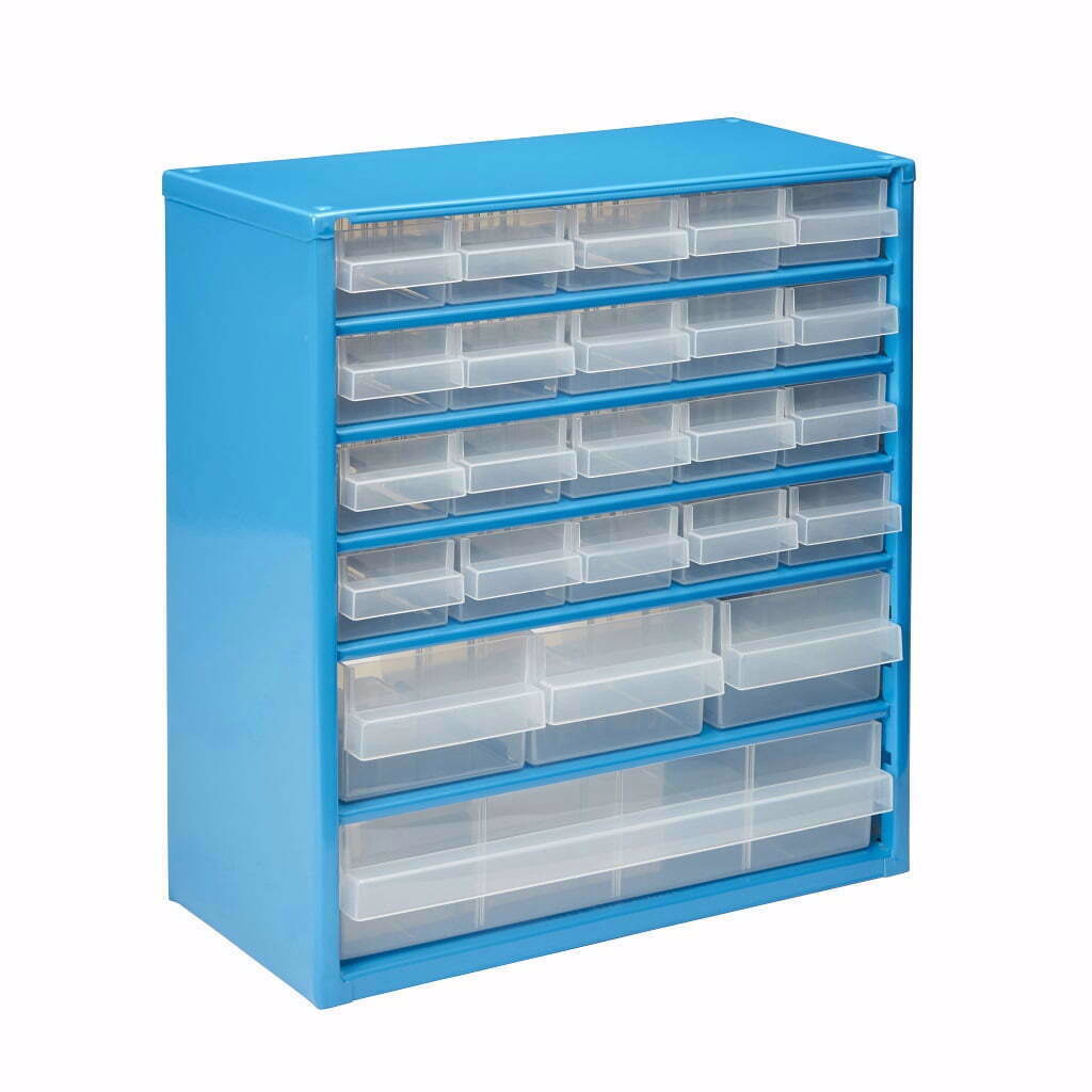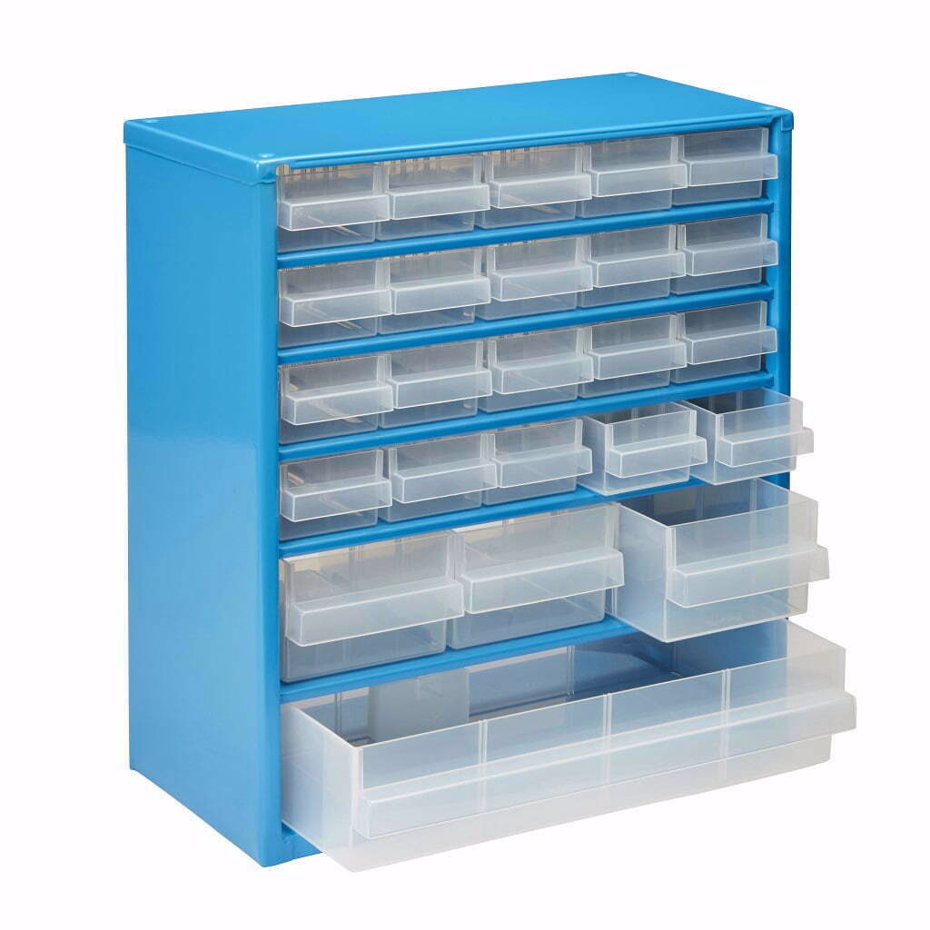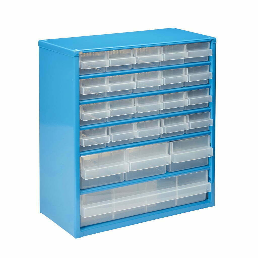 Dulapul cu 24 de sertare este potrivit pentru sortarea pieselor si sculelor mici. Poate fi agatat pe un perete