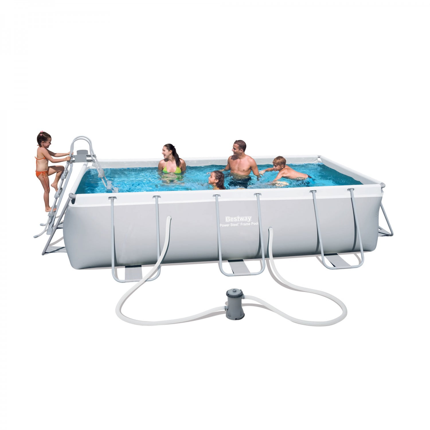 Piscina cu cadru metalic Bestway 56441, 404 x 201 x 100 cm, scara si pompa filtrare este usor de asamblat, durabila si proiectata pentru multi ani de distractie alaturi de prieteni si familie.