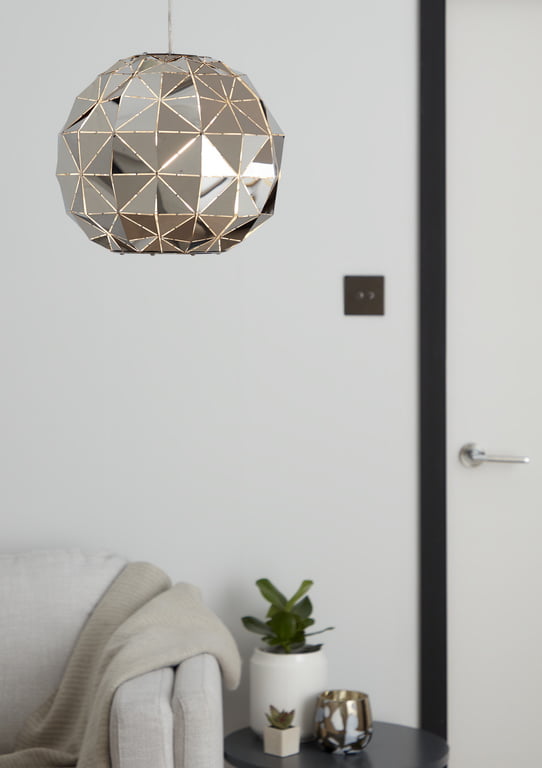 Pendul sticla efect cromat, 1xE27, efect cromat, design modern intra in categoria elementelor decorative care aduce un plus de eleganta incaperii dvs.