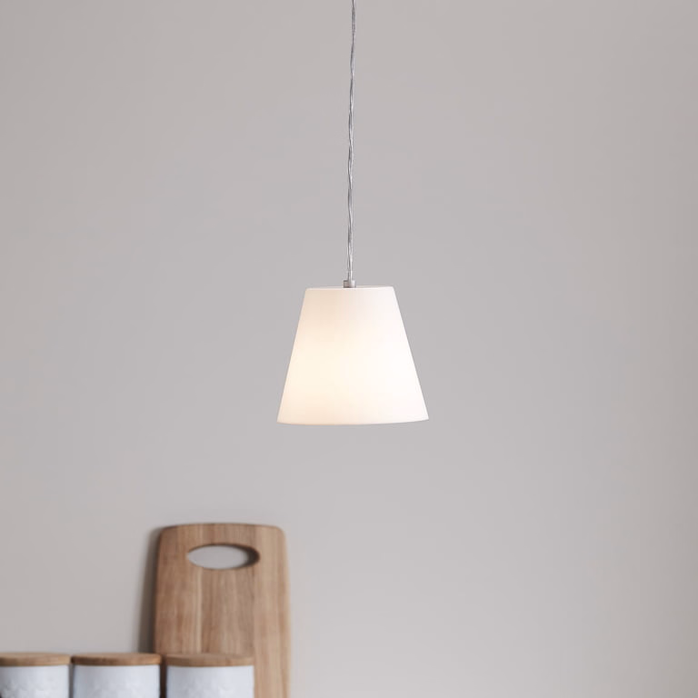 Designul in forma de clopot directioneaza lumina in jos, aratand excelent deasupra barurilor, a meselor de sufragerie sau in incaperile mici