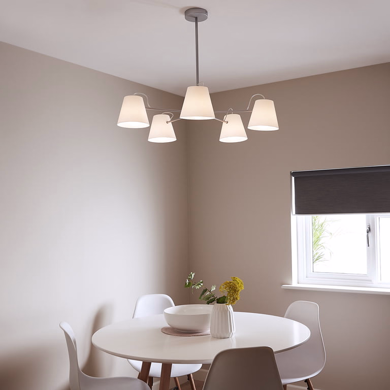 Acasă » Shop » Casa » Corpuri de Iluminat » Lustre si Pendule » Pendul GLS Syenite, alb, 5xE27, efect cromat