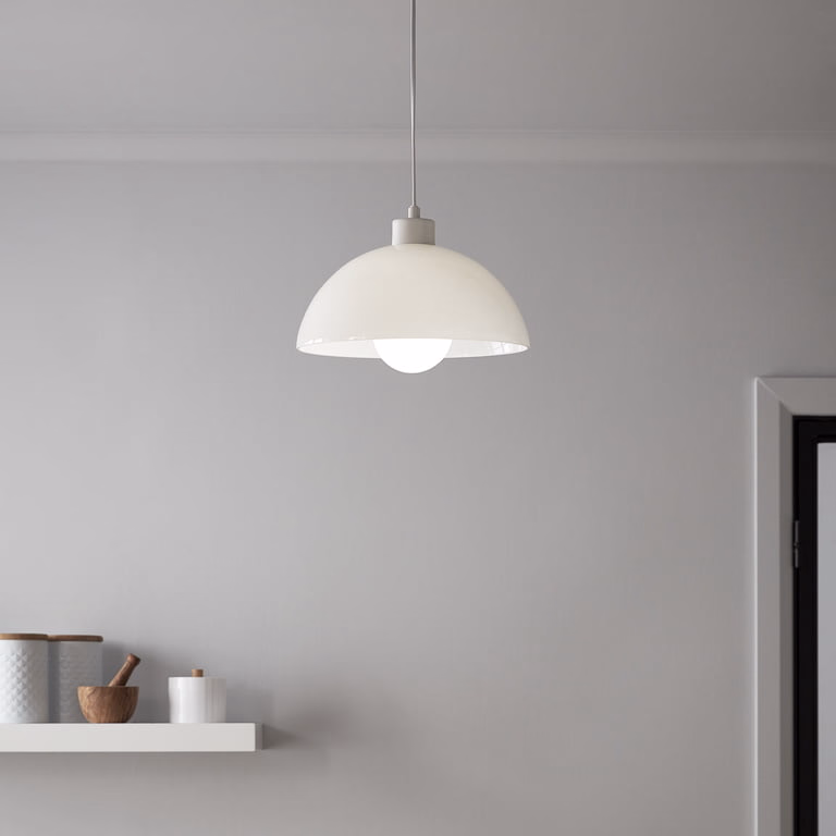 Pendul sfera GoodHome Songor, alb, 1xE27, design modern, reprezinta alegerea perfecta pentru iluminarea livingului preferat.