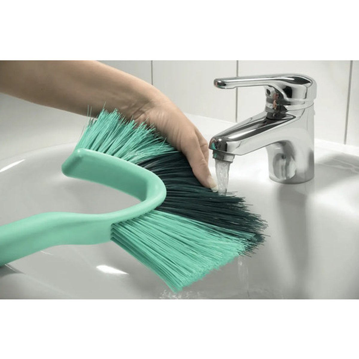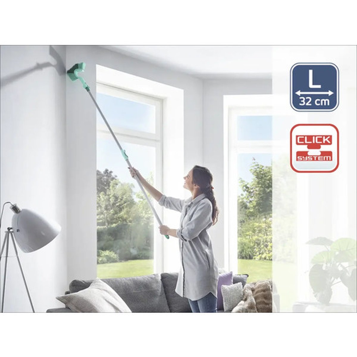 Mânerul este fabricat din plastic rezistent și dispune de sistemul Click-System, permițând atașarea rapidă și sigură a altor accesorii Leifheit compatibile. Cu o lungime totală de 220 mm, peria este ușor de manevrat, oferind confort în utilizare.