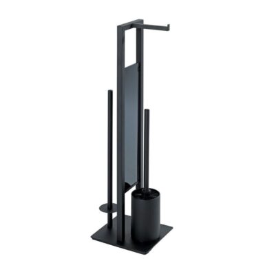 Realizat din materiale premium precum oțelul vopsit în negru și sticlă securizată neagră, setul Rivalta adaugă o notă de modernitate oricărui spațiu sanitar. Combinația sa ingenioasă 3-în-1 include un suport deschis pentru peria de toaletă, un spațiu dedicat pentru o rolă de hârtie igienică pentru acces imediat și un suport separat capabil să stocheze până la 3 role de rezervă, asigurând astfel că nu rămâneți niciodată fără.