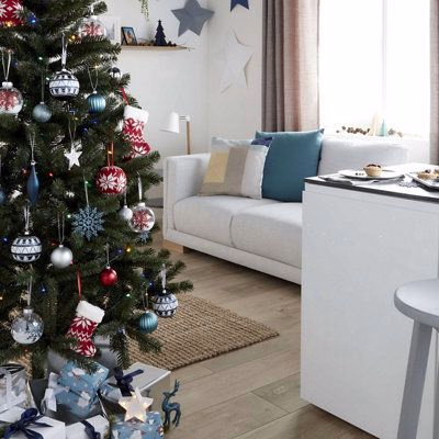 Creati o atmosfera festiva oricarei camere cu acest pin artificial verde de 183 cm, cu o varietate de decoratiuni pentru un aspect festiv perfect.