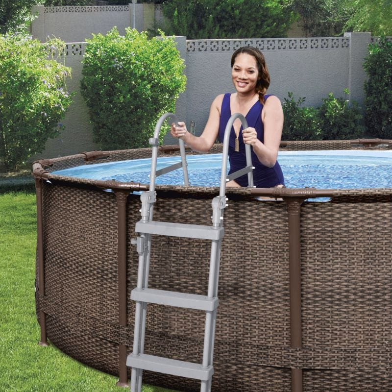 Construcția robustă din oțel asigură durabilitate și stabilitate, în timp ce finisajul din PVC protejează împotriva razelor UV. Piscina include o pompă filtrantă cu un debit de 2 m³/h, asigurând apa curată și igienizată. Scara de siguranță inclusă permite accesul ușor și sigur în piscină. Asamblarea este simplă și rapidă, astfel încât vă veți putea bucura de piscina dumneavoastră în cel mai scurt timp.