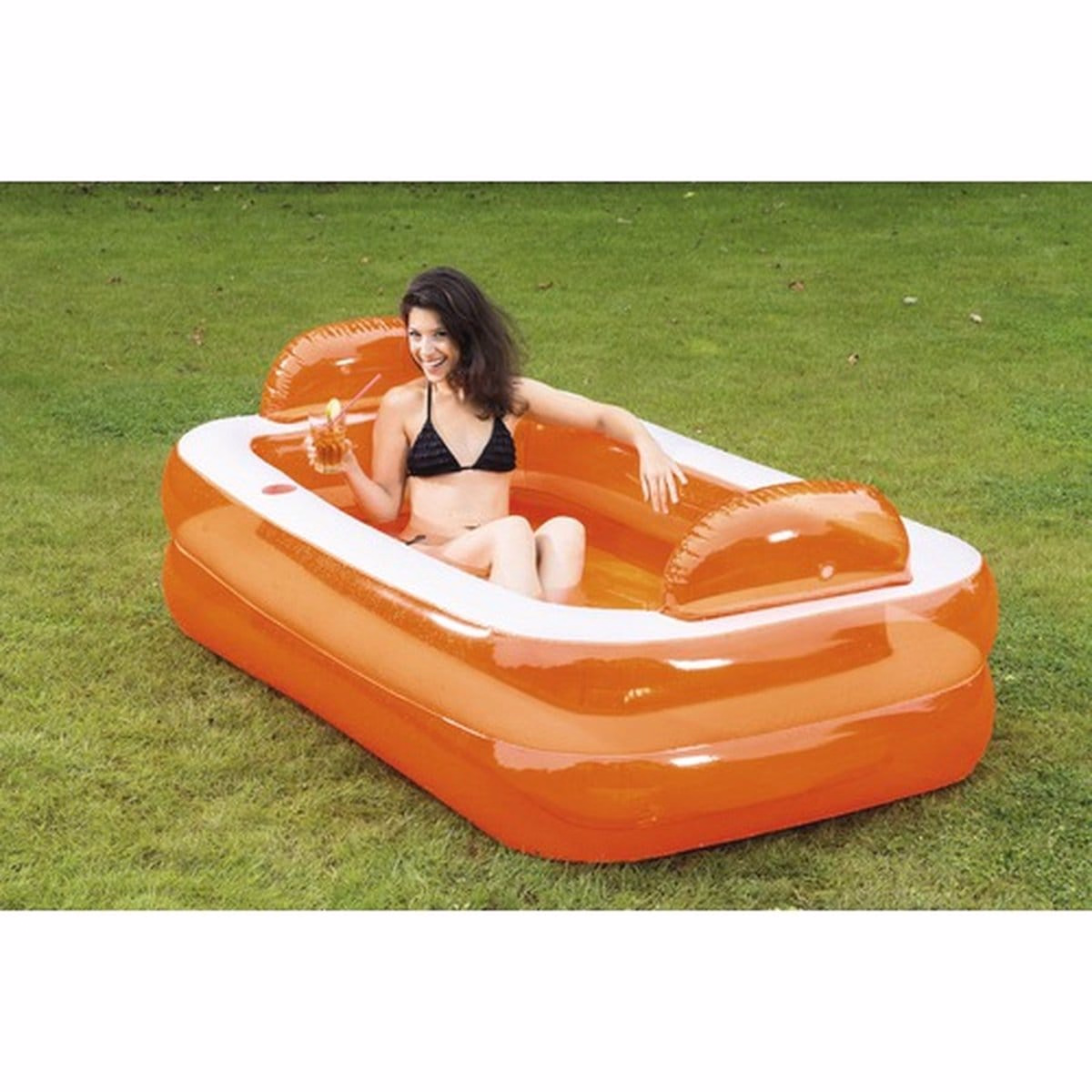 Cu dimensiunile sale generoase de 195 x 122 x 50 cm și o capacitate de 400 litri, piscina oferă suficient spațiu pentru mai mulți copii sau chiar pentru un adult. Două inele robuste asigură stabilitatea piscinei, iar tetiera integrată adaugă un plus de confort.