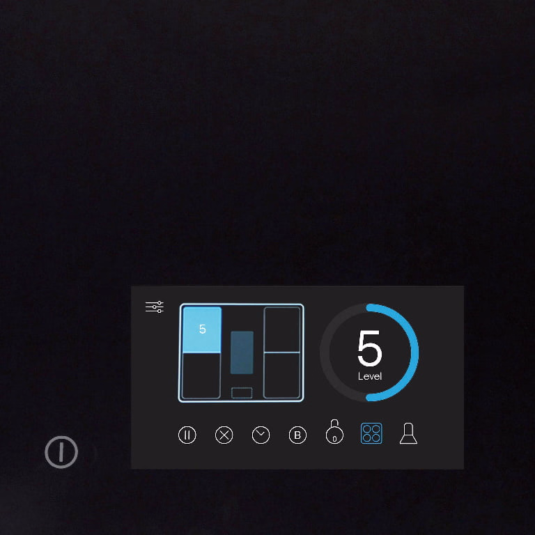 Plita are ecran TFT color, care permite controlul intuitiv „multi-touch” si controlul prin gesturi atat pentru plita, cat si pentru hota GoodHome.