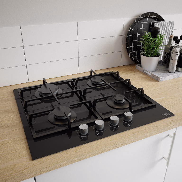 Plita pe gaz din sticla Cooke & Lewis, 4 zone de gatit, putere 7.35 kW reprezinta o alegere perfecta pentru a oferi un plus de rafinament bucatariei dvs.