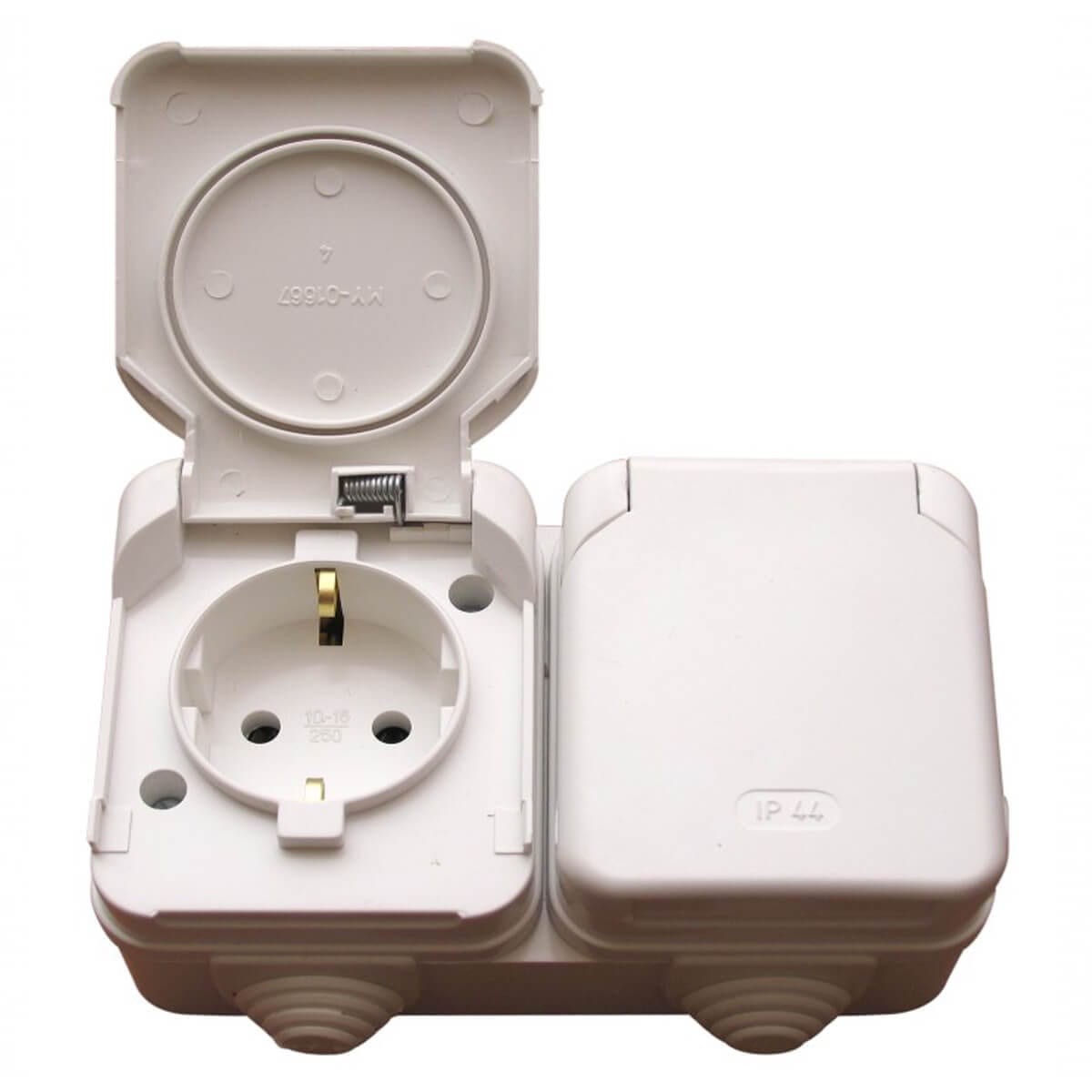 Priza dubla de tip Antigron, cu capac din plastic si protectie la praf si umezeala. Destinata aplicatiilor tehnice cu un grad maxim de protectie IP44.