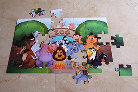 Puzzle de podea Zoo Jumbo 48 piese, 87×57 cm, cu 48 de bucati de puzzle si are dimensiunea puzzle-ului de 87cm x 57 cm cand este finalizat.