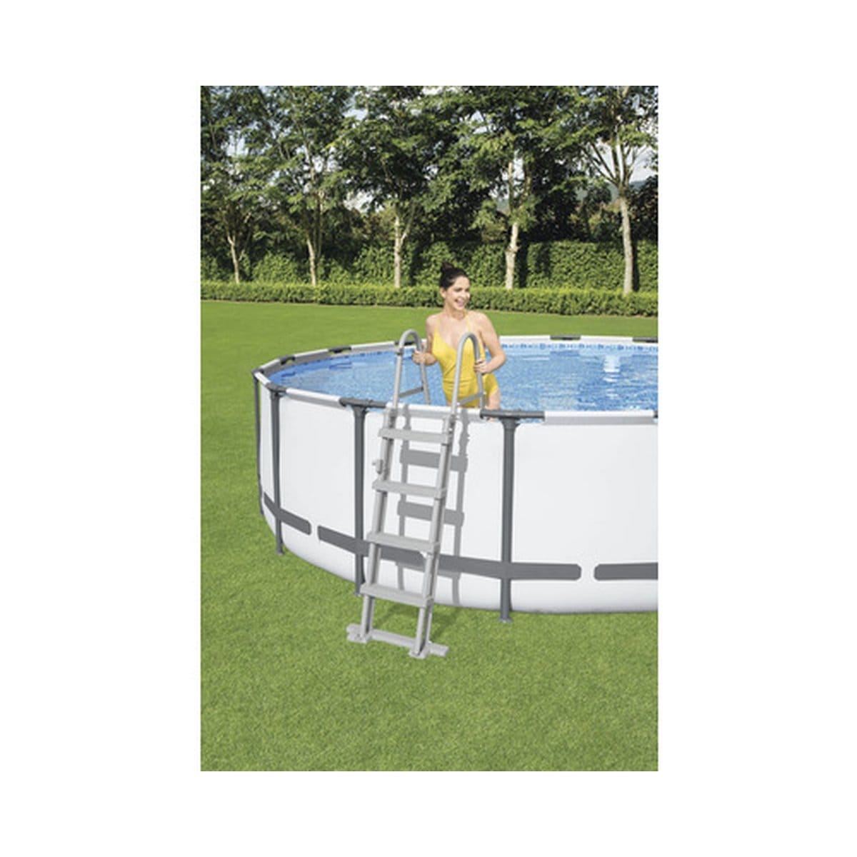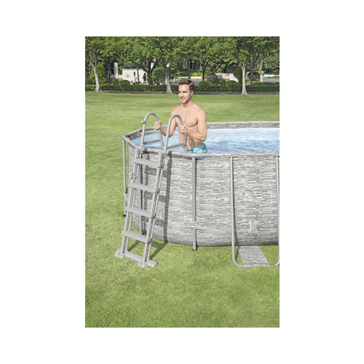 Cu o înălțime totală de 122 cm și 2 x 3 trepte, scara oferă o urcare ușoară și sigură, indiferent de adâncimea piscinei. Treptele din plastic asigură o aderență excelentă, prevenind alunecările. Scara este concepută pentru o greutate maximă suportată de 150 kg, asigurând siguranța utilizatorilor.