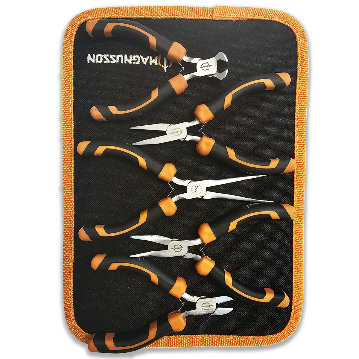Setul de mini clesti Magnusson PL114, compus din 5 piese, este ideal pentru lucrari de precizie in domenii precum electronica, bijuterii sau modelism.