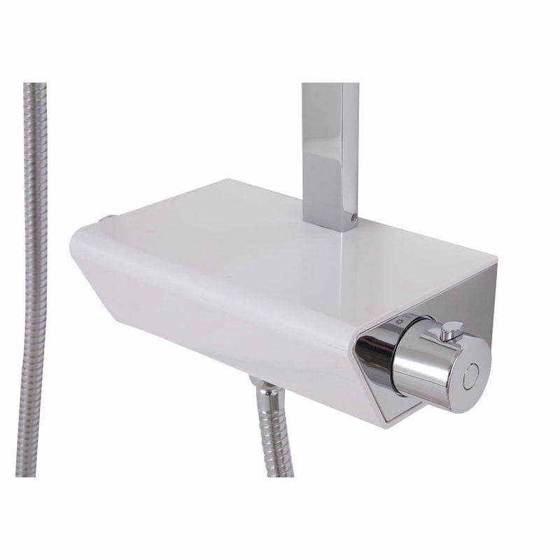 Set de dus patrat Nabi, mixer termostatic, efect crom, este perfect pentru a adauga un finisaj in stil contemporan al baii – capul de dus geometric si designul elegant vor decora cu stil baia ta. Dotat cu dus suspendat si dus de mana, aduce mai aproape experienta spa-ului acasa la tine.