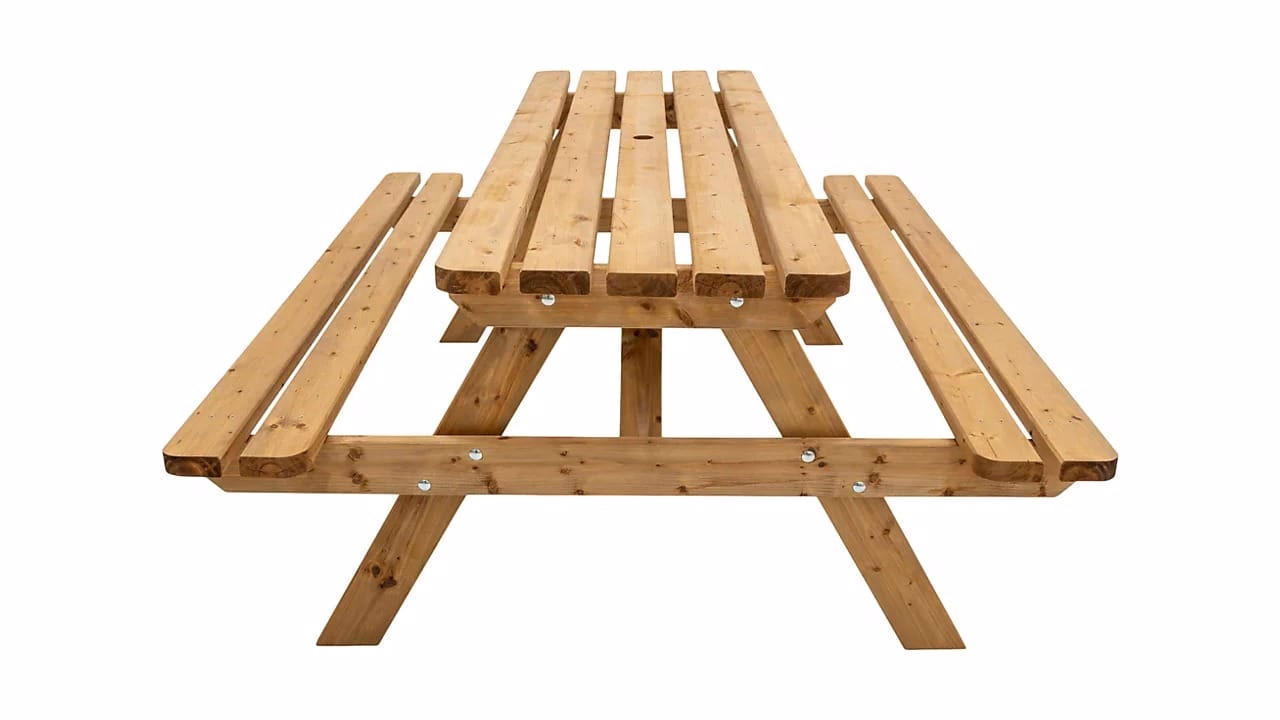 Set Mobilier Gradina cu Suport Umbrela – Masa si 2 Banci, GoodHome Cabbio, format din masa si 2 banci, este perfect pentru a crea un spatiu confortabil in aer liber.