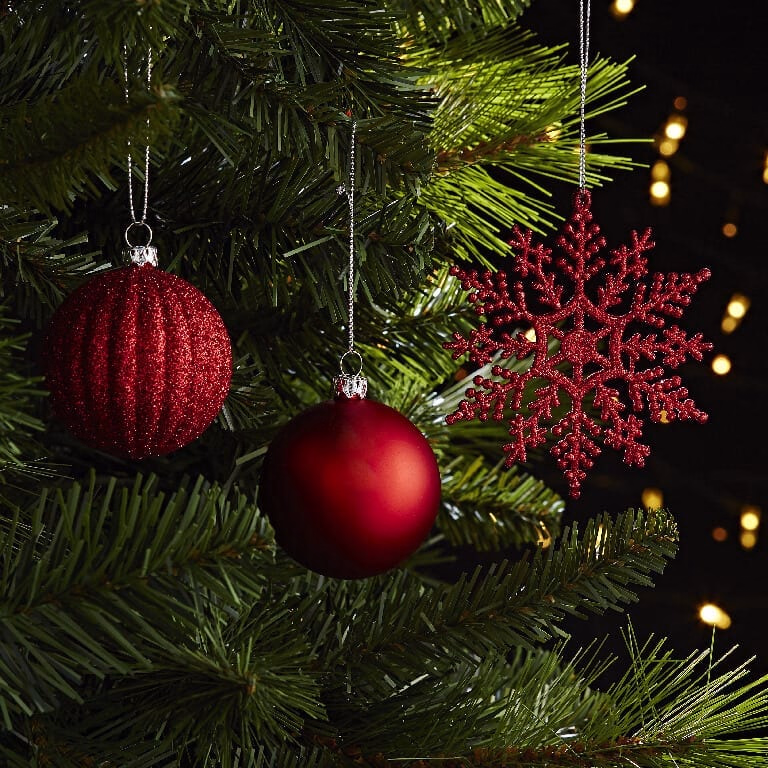 Cumpara ieftin Set Varf de Brad si Globuri Rosii – 50 Decoratiuni