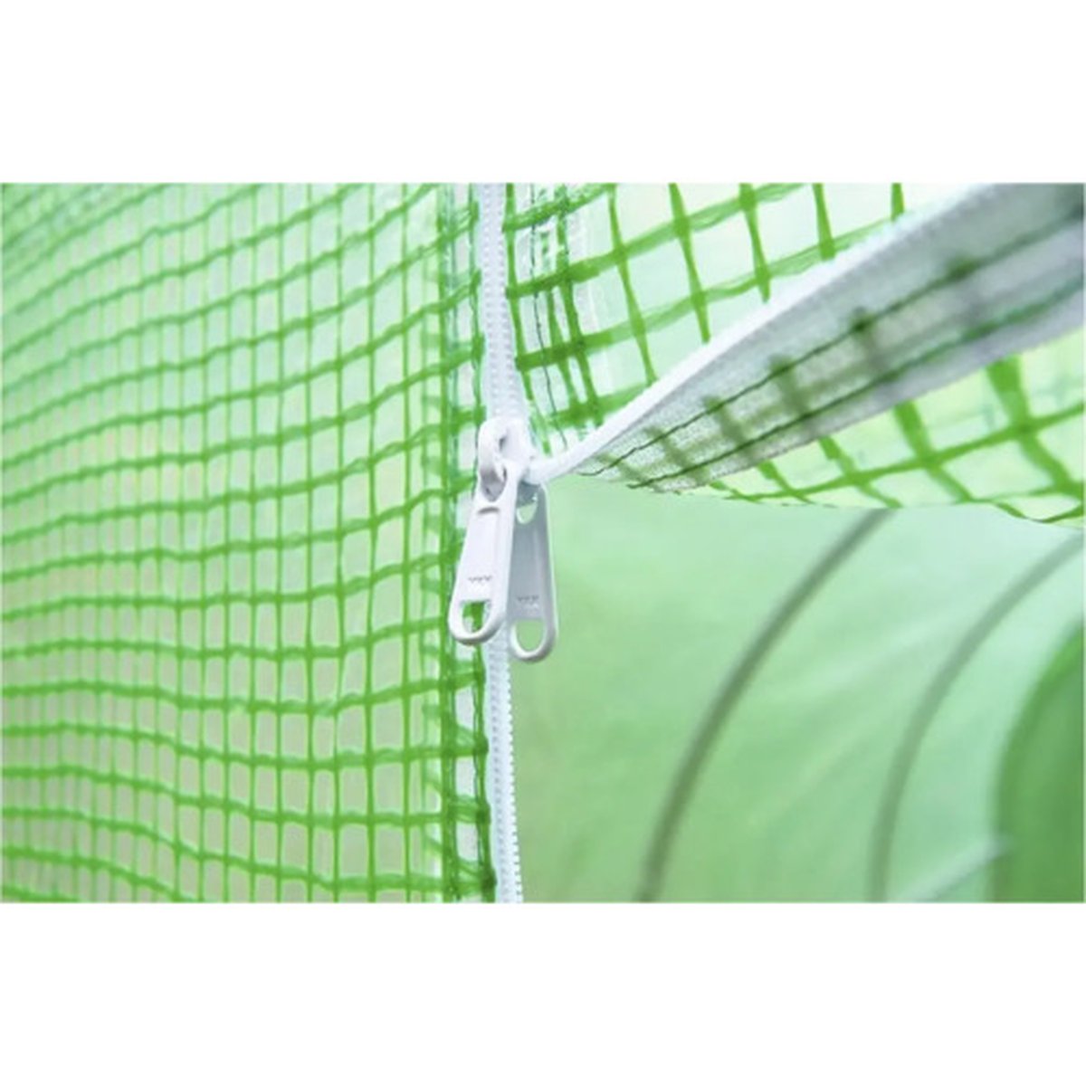 Construcția din oțel asigură durabilitatea și stabilitatea solarului, protejând plantele de condițiile meteorologice nefavorabile. Folia de acoperire, cu o grosime de 140 g/m², este rezistentă și permite trecerea luminii necesare pentru o creștere sănătoasă a plantelor.