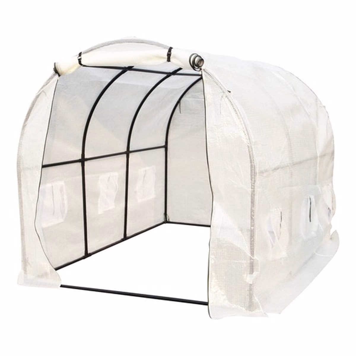 Protejați-vă plantele de intemperii cu acest solar de grădină tip tunel, cu dimensiunile generoase de 200×300 cm și o înălțime a coamei de 190 cm. Culoarea albă a foliei reflectă razele solare, contribuind la menținerea unei temperaturi optime în interior.