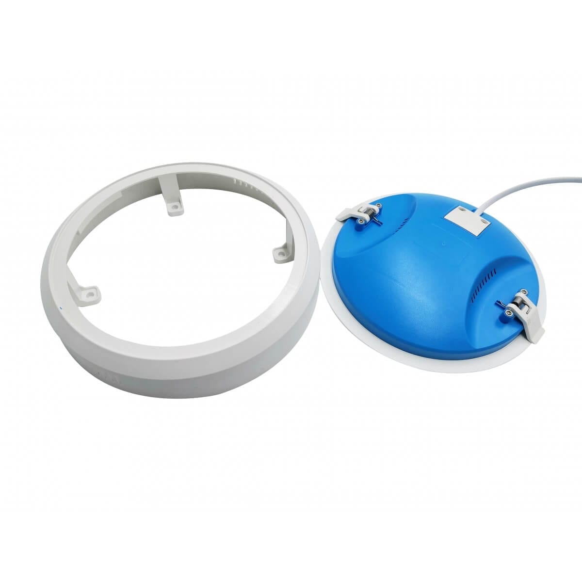 Particulariatatea speciala al acestui corp de iluminat este faptul ca poate fi montat atat incastrat, in tavan de gips-carton cat si aplicat pe tavan de beton, cu ajutorul ramei care este inclusa in pachet.