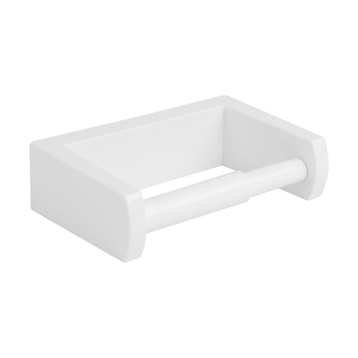 Suport hartie igienica Funky din plastic alb lucios. Soluție practică și estetică pentru baia dumneavoastră. Fixare prin gaurire.