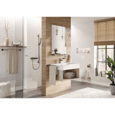 Finisajul grafit mat, în nuanța Gun Metal, conferă un aspect modern și sofisticat, integrându-se perfect în diverse stiluri de amenajare interioară, în special în încăperile umede.
