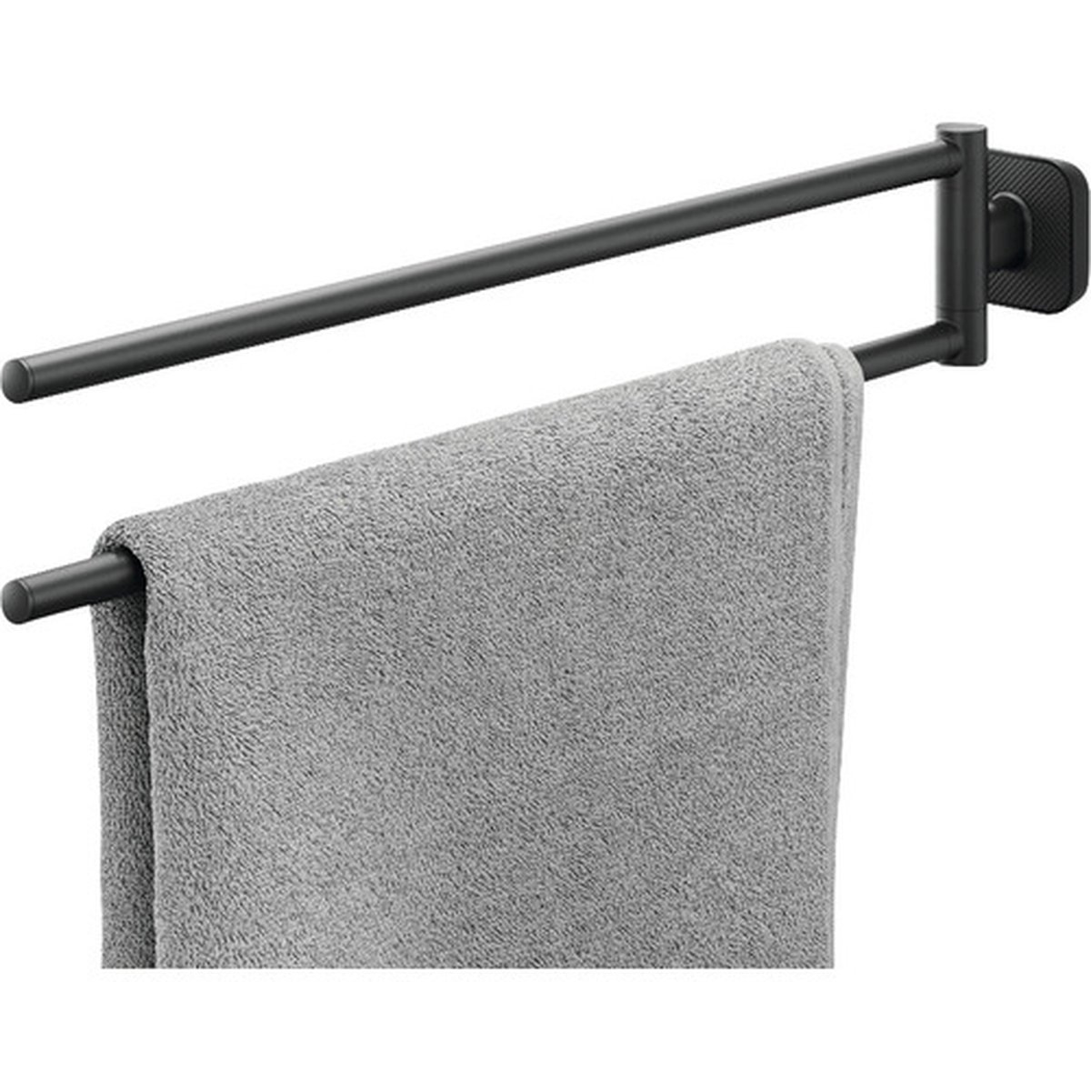 Suportul pentru prosoape TIGER Carv, cu un design modern și finisaj negru mat, este soluția ideală pentru organizarea eficientă a spațiului în baia dumneavoastră. Modelul mobil dispune de 2 brațe, oferind multiple posibilități de utilizare. Realizat din materiale de înaltă calitate precum oțel inoxidabil și plastic ABS, acest suport combină durabilitatea cu un aspect elegant.