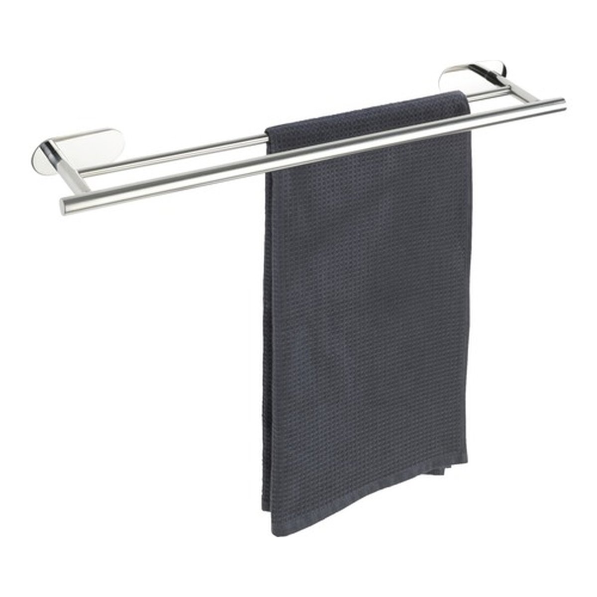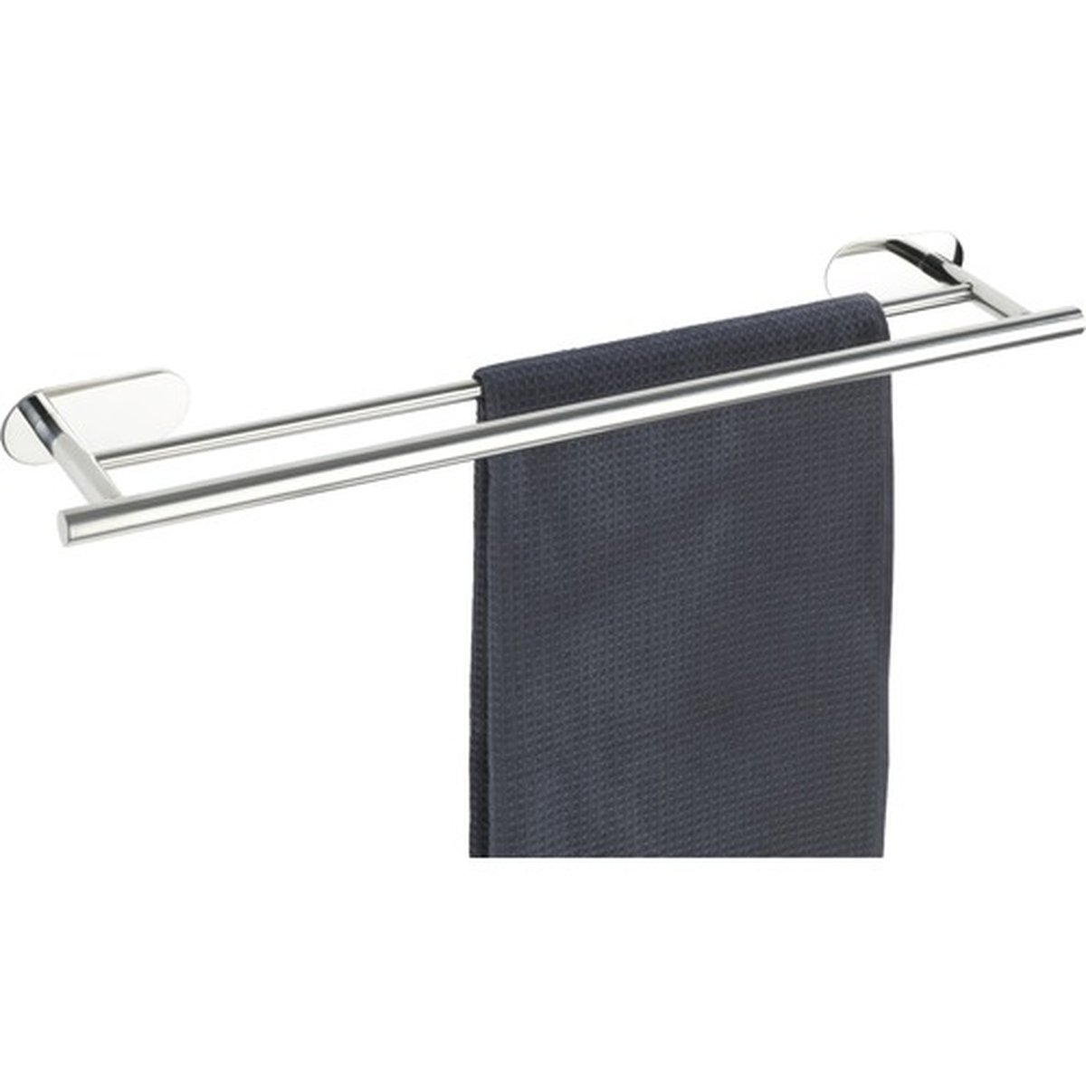 Designul său modern, cu finisaj cromat lucios, adaugă o notă de rafinament oricărui spațiu. Cu două brațe spațioase, suportul permite depozitarea eficientă a prosoapelor, menținându-le la îndemână și ordonate.