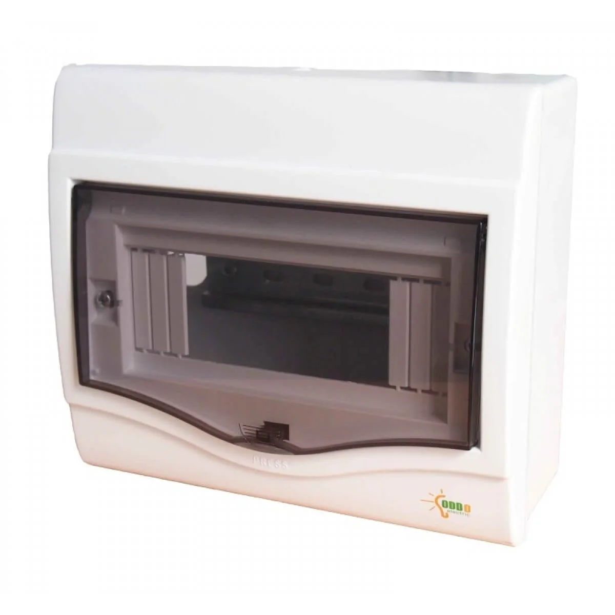 Tablou din plastic de culoare alb cu usa transparenta. Contrapanou cu sina de 35 mm. Indice de protectie IP20.