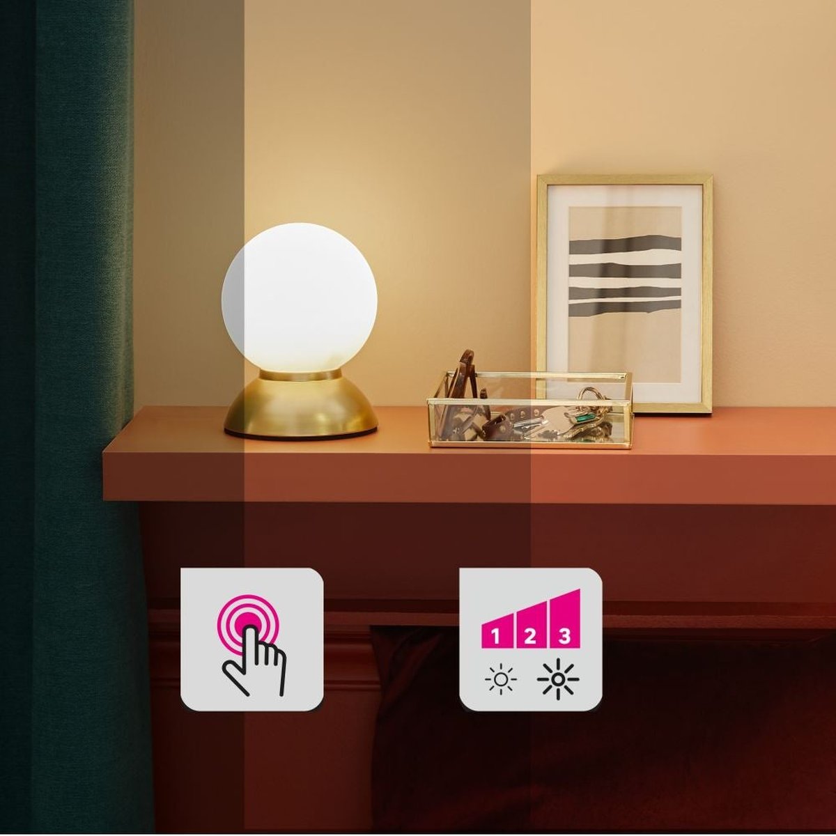 Veioza LED Koze adaugă o notă de eleganță și funcționalitate oricărui spațiu. Cu o intensitate luminoasă de 450 de lumeni și o temperatură de culoare de 3000K (lumină caldă), creează o atmosferă primitoare și relaxantă, perfectă pentru serile petrecute acasă. Înălțimea sa compactă de 17 cm o face ideală pentru a fi amplasată pe noptieră, birou sau o comodă, fără a ocupa mult spațiu.